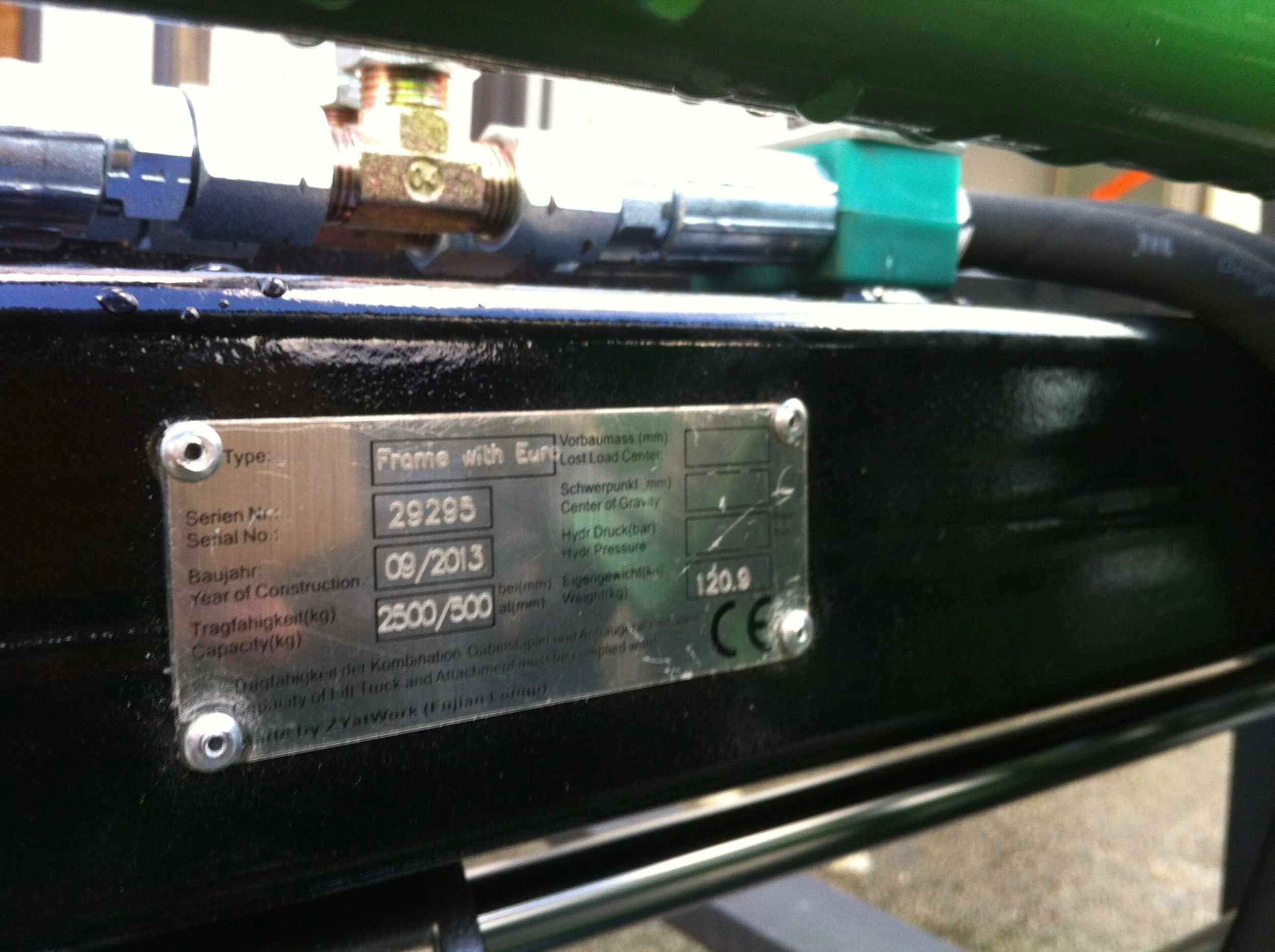 Løftekapasitet: 2500 kg/50 cm ut på gaffel.