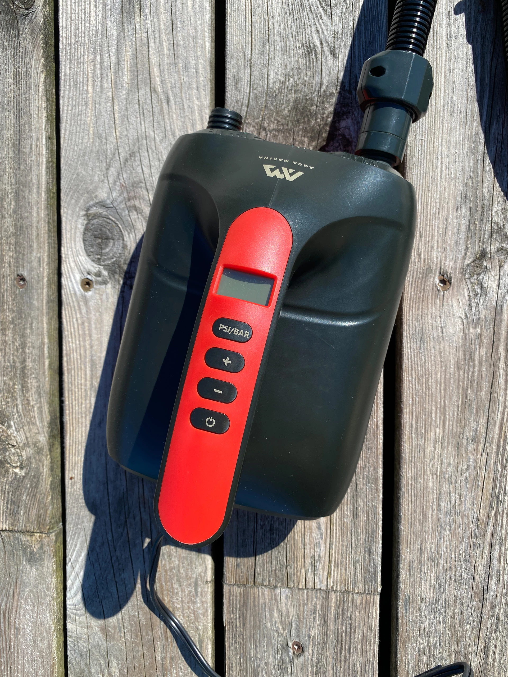 12V DC elektrisk pumpe opp til 20PSI trykkfra Aqua Marina. Den har klart display med LCD-skjerm.