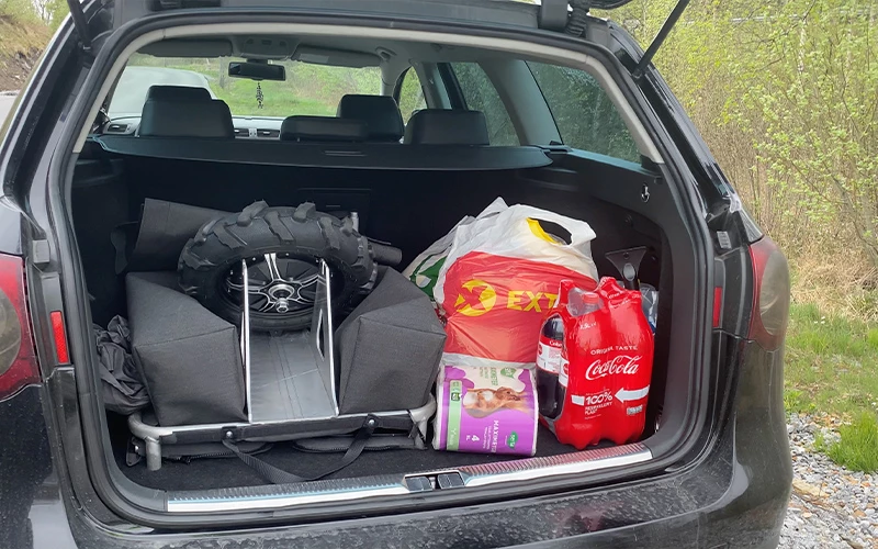 Kan enklet flatpakkes for transport i bil.