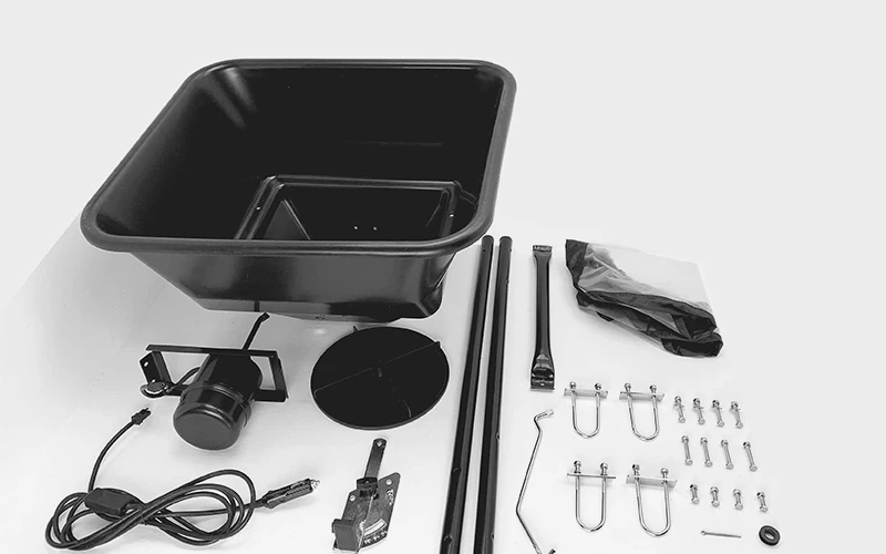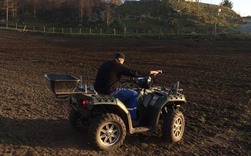 Arbeids område på grasfrø er ca 4 kg pr da (1000m2). Perfekt for reparasjon av eng og beite eller til gjenlegg. Kobles til sigarett tenner. Åpnemekanisme med justerering av mengde på fragmenter i forhold til kjørehastighet. Maskinen er lett å tilpasse forskjellige kjøretøyer. Festebraketter og ledning for tilkobling til batteri følger med.
