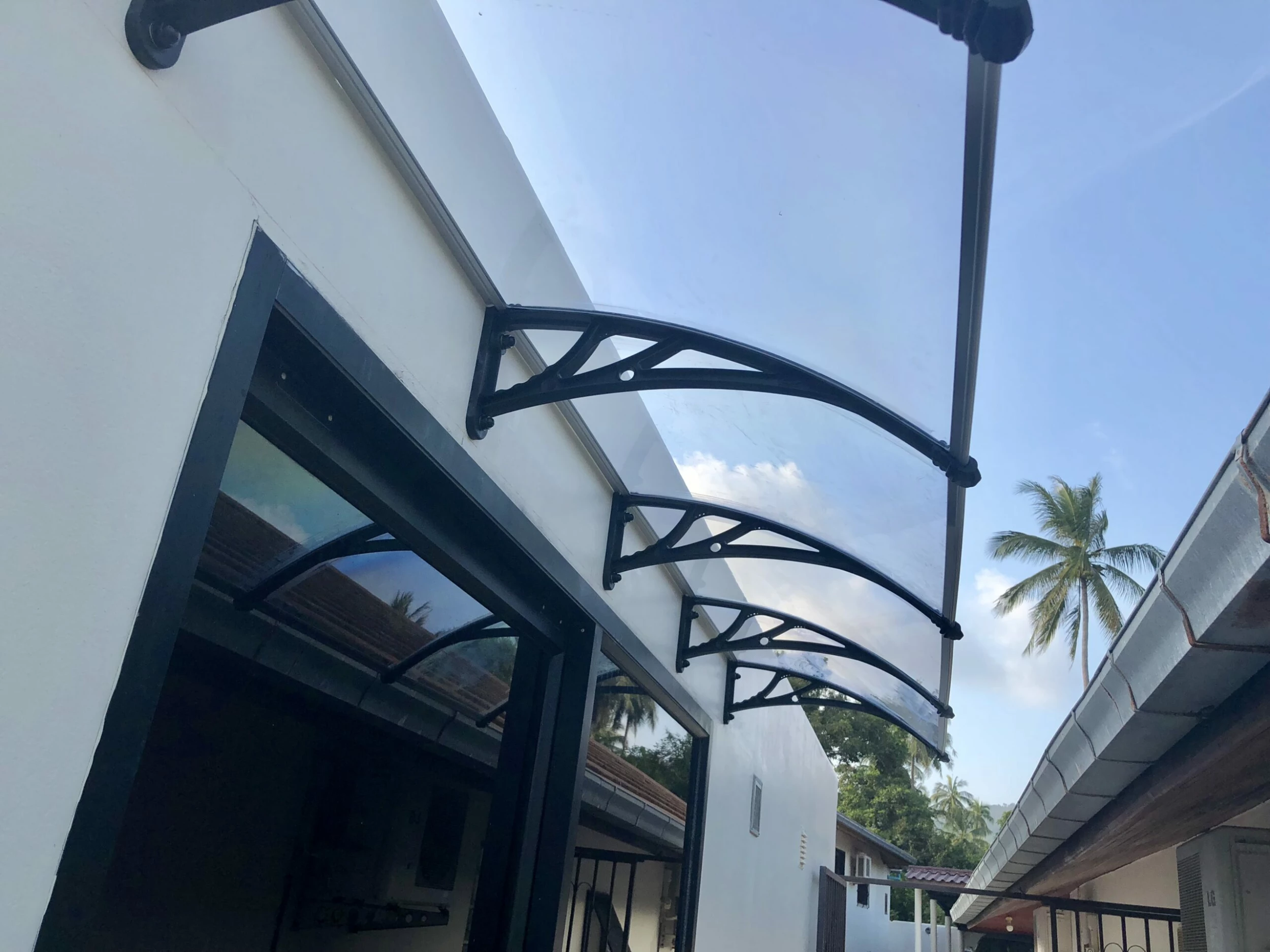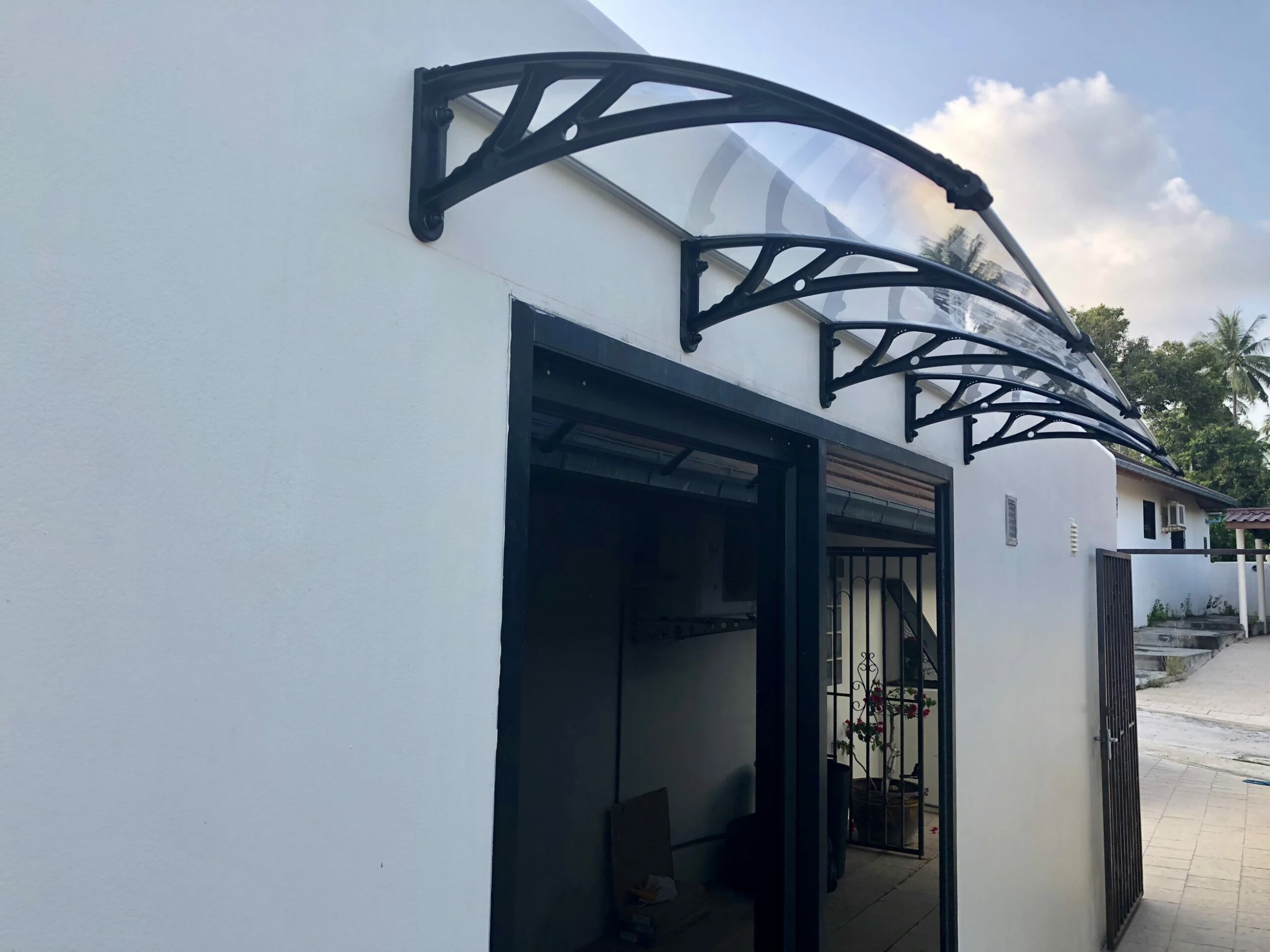 Et elegant entretak som beskytter ytterdøren/varmepumpen. Gir et innbydende moderne utseende.
