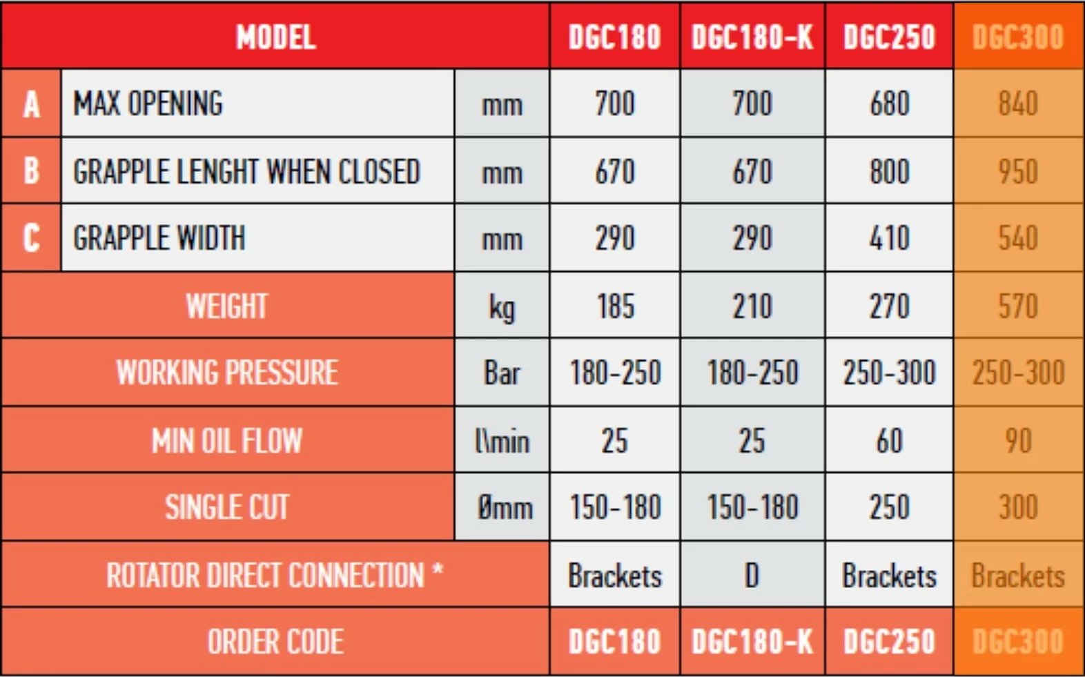 Maks arbeidstrykk – 300 bar