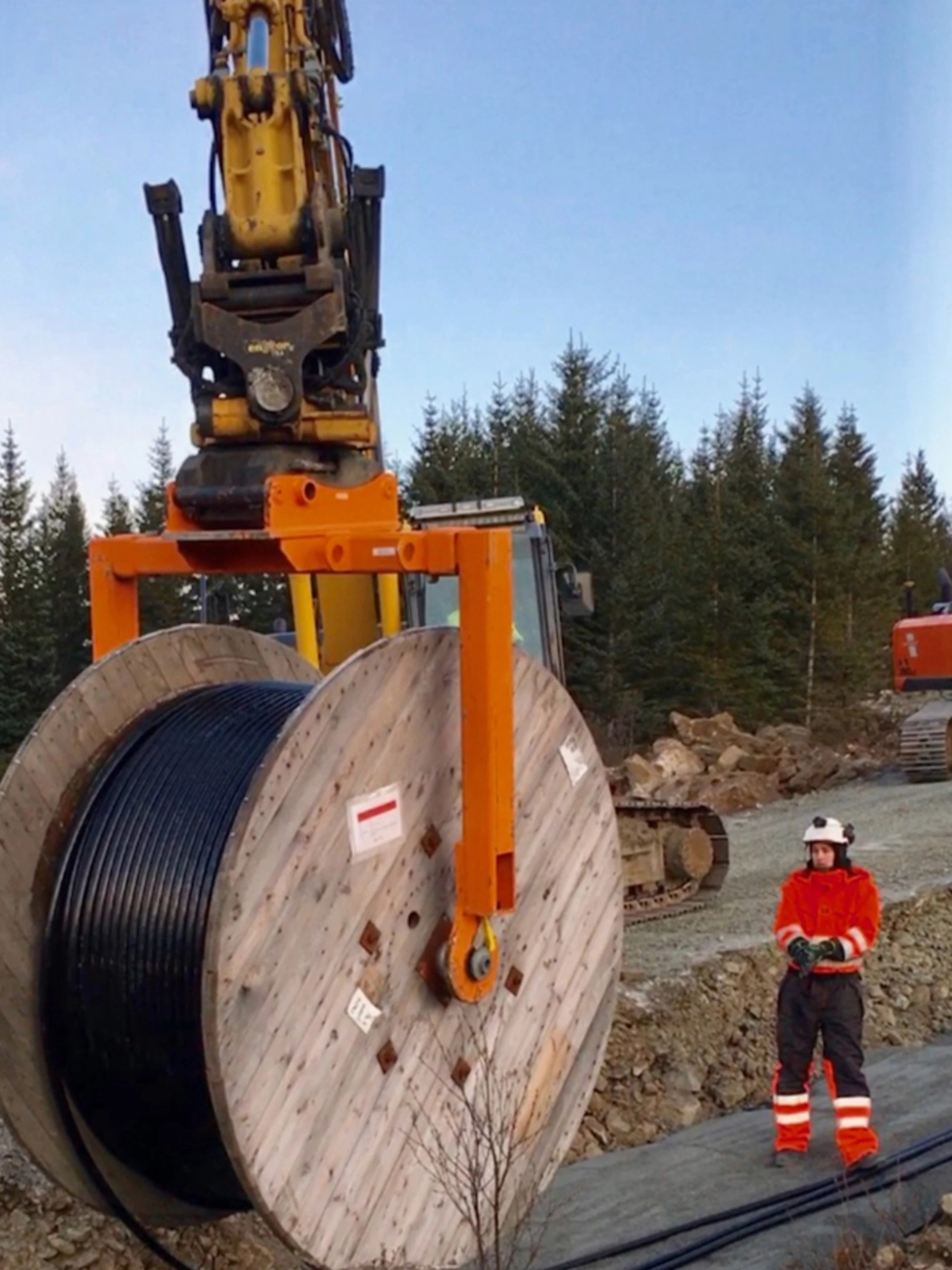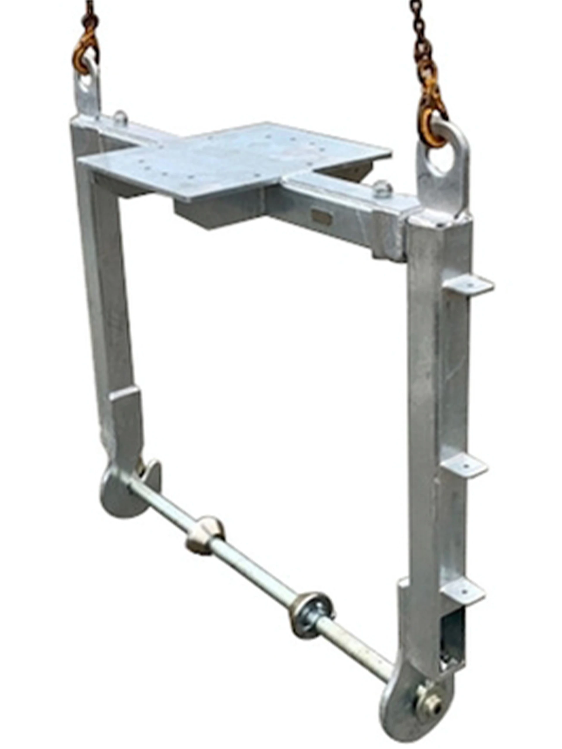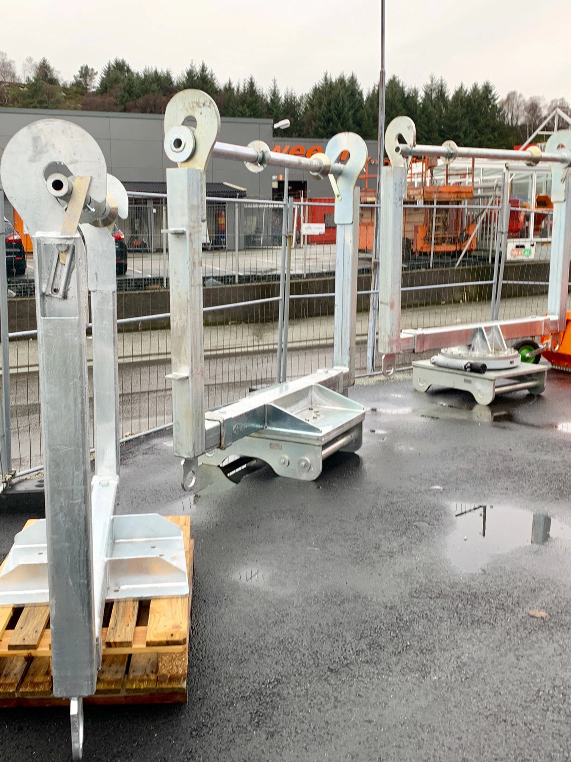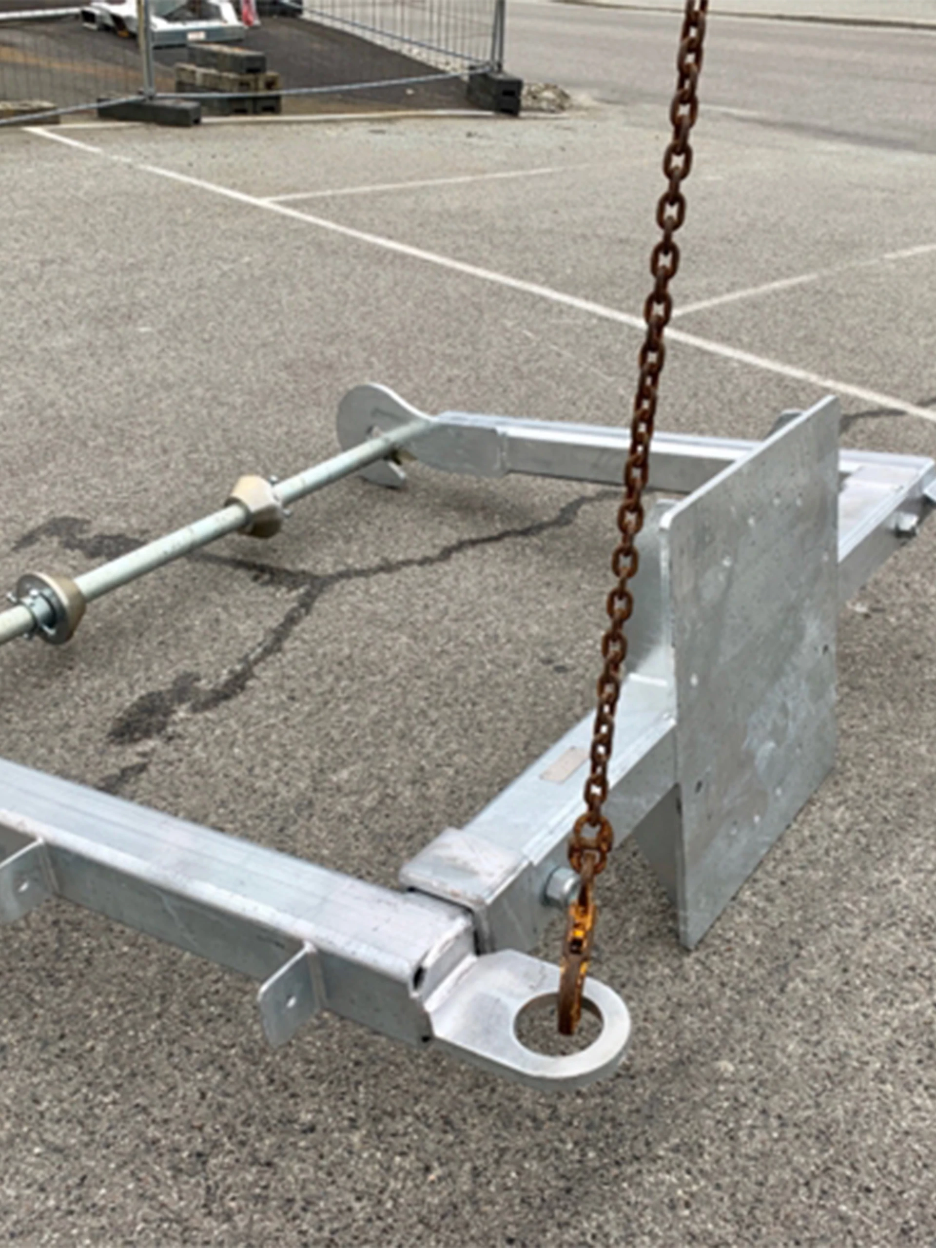 Det er enkel tilkobling. Den er varmgalvanisert og har fester for kjetting og stropper. Den er godkjent for 3.200 kg. Alternative fester er S50/S60, S60 og S60/S70. Løfteåk er beregnet for sikker flytting av kabeltromler, og ikke minst enkel legging av kabler.