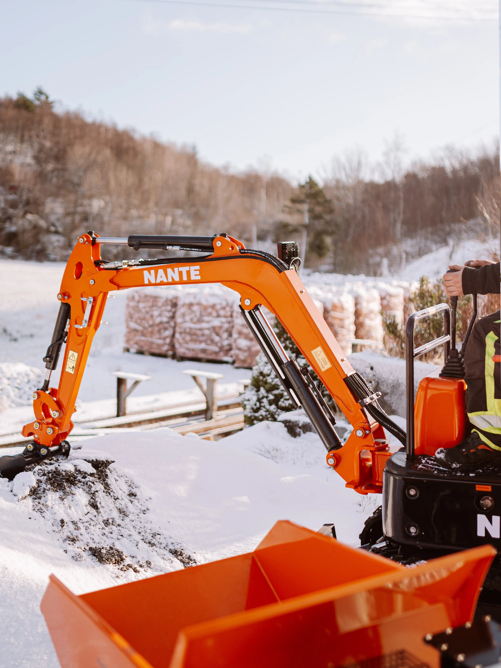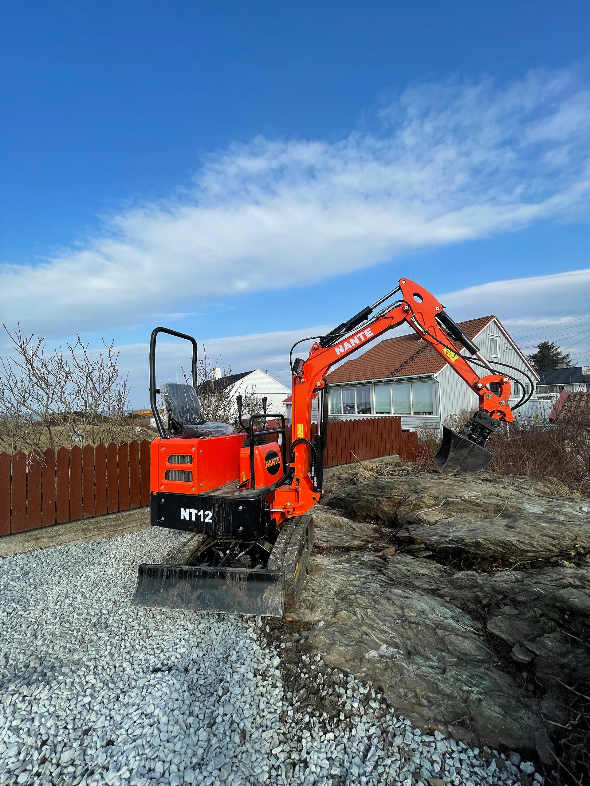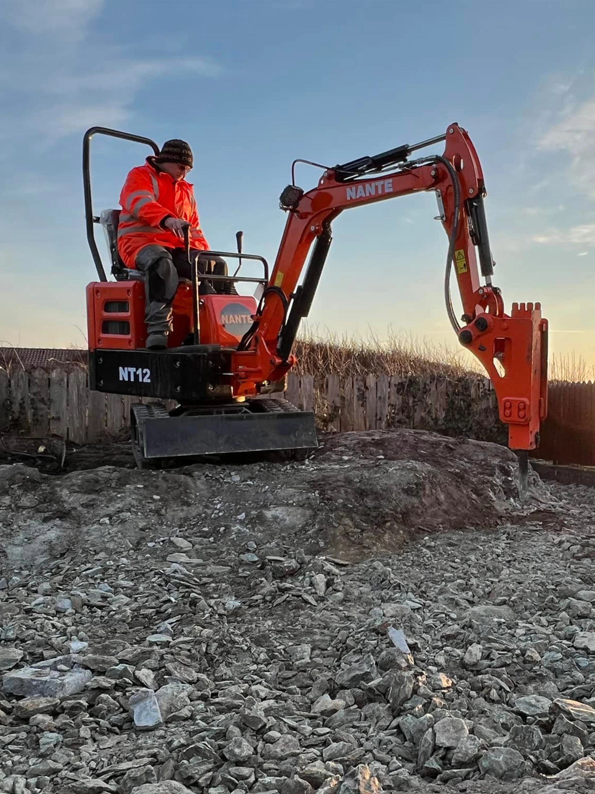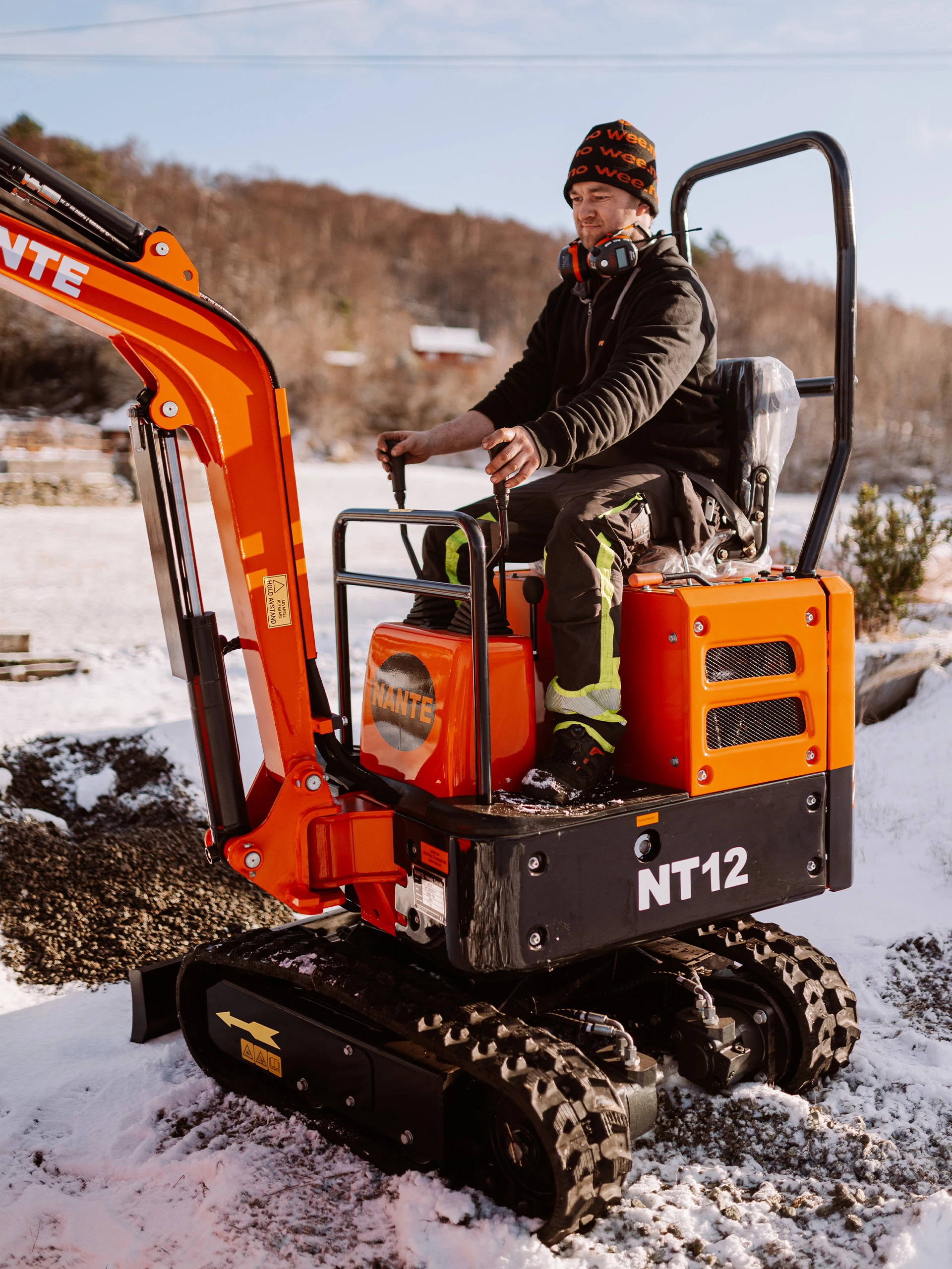 Nante NT12 er utstyrt med en Yanmar 3 sylindret diesel motor. Bommen er svingbar. Maskinen har oljekapasitet til å dra 100kg slag hammer.