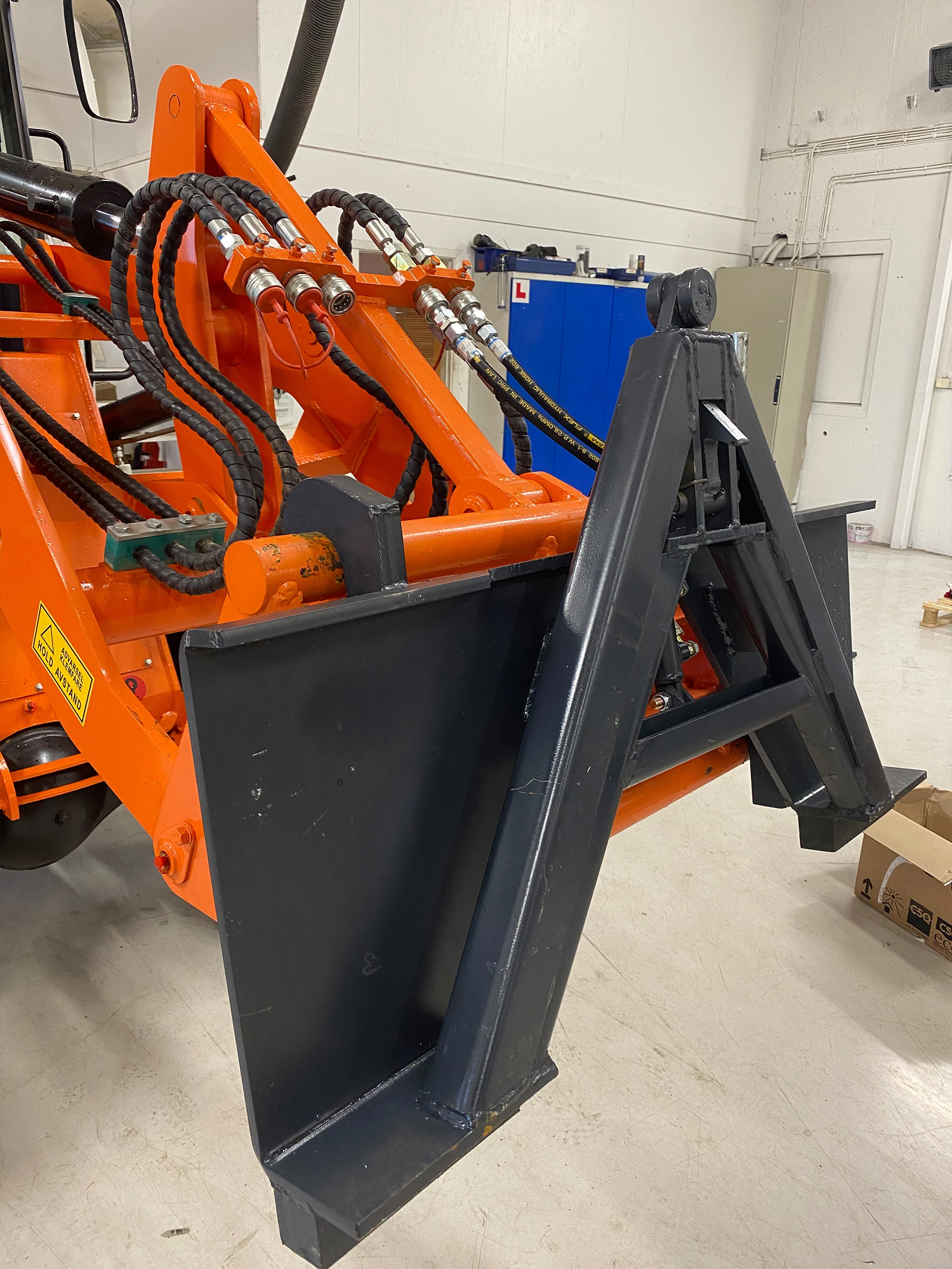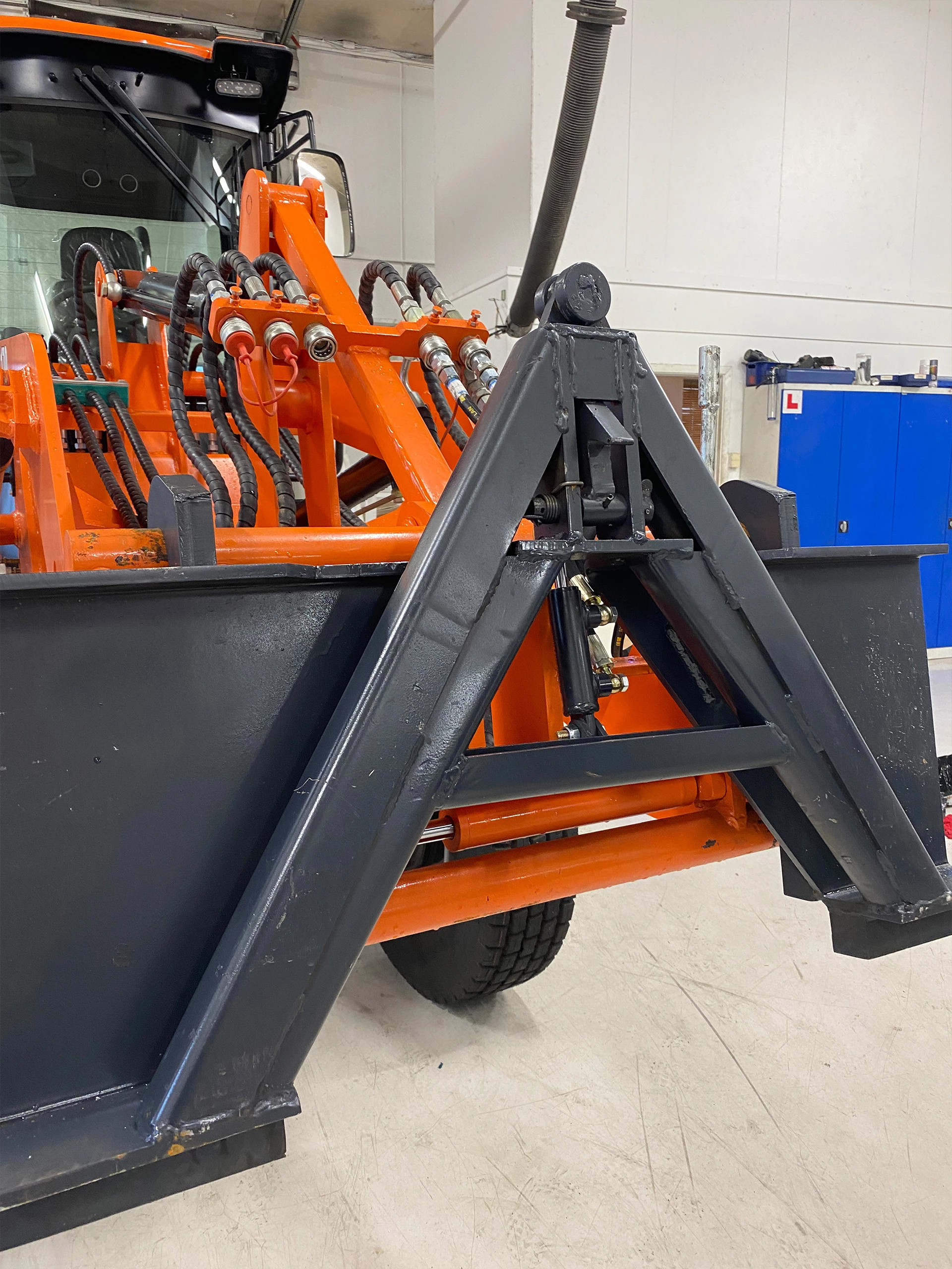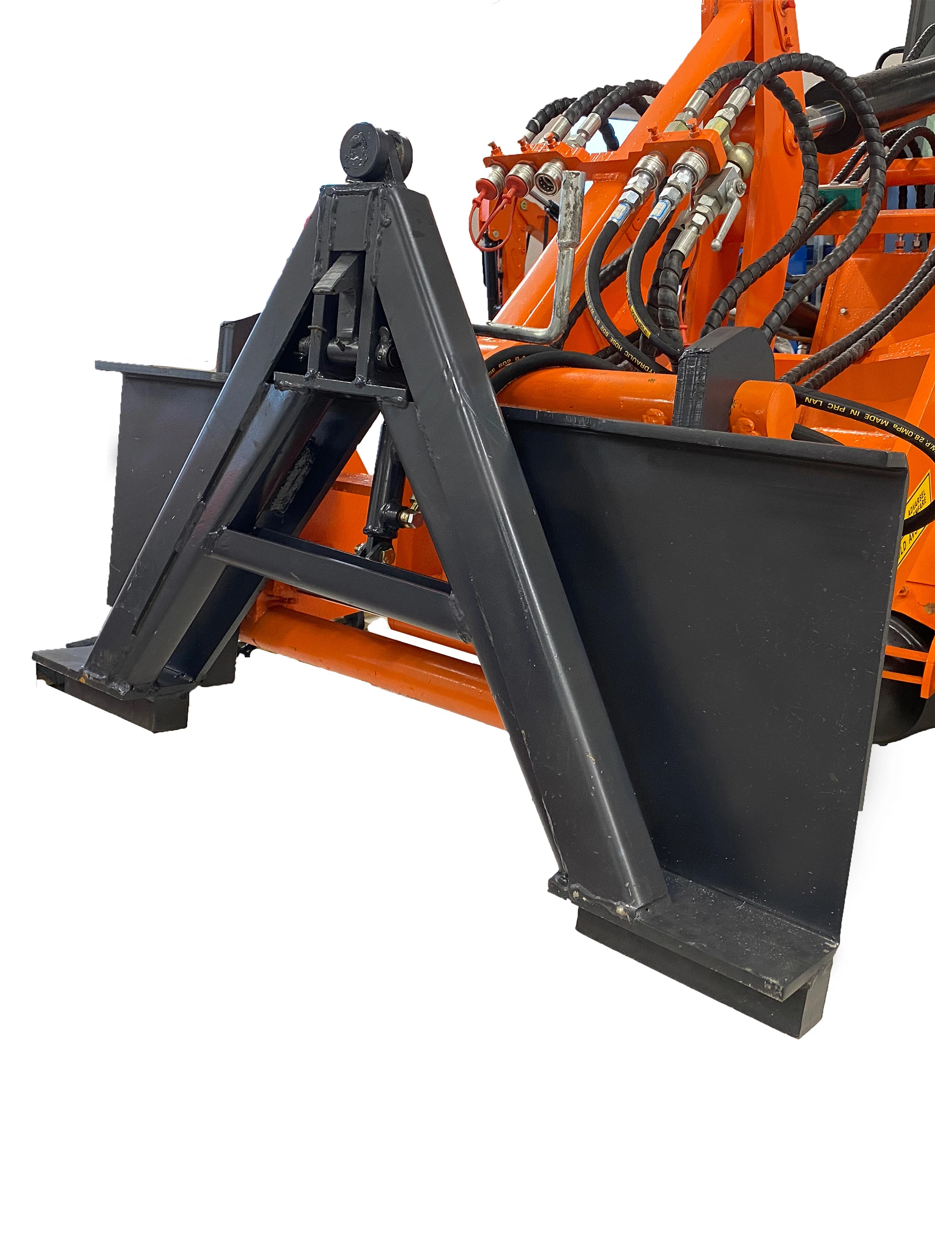 Letter arbeidet med tilkobling av redskap, sparer ryggen for slit, og ikke minst vil dette være sikrere da en slipper å forlate førersetet, og klemfaren elimineres vekk. A-rammen er utstyrt med hydraulisk låsing for den som setter pris på dette.