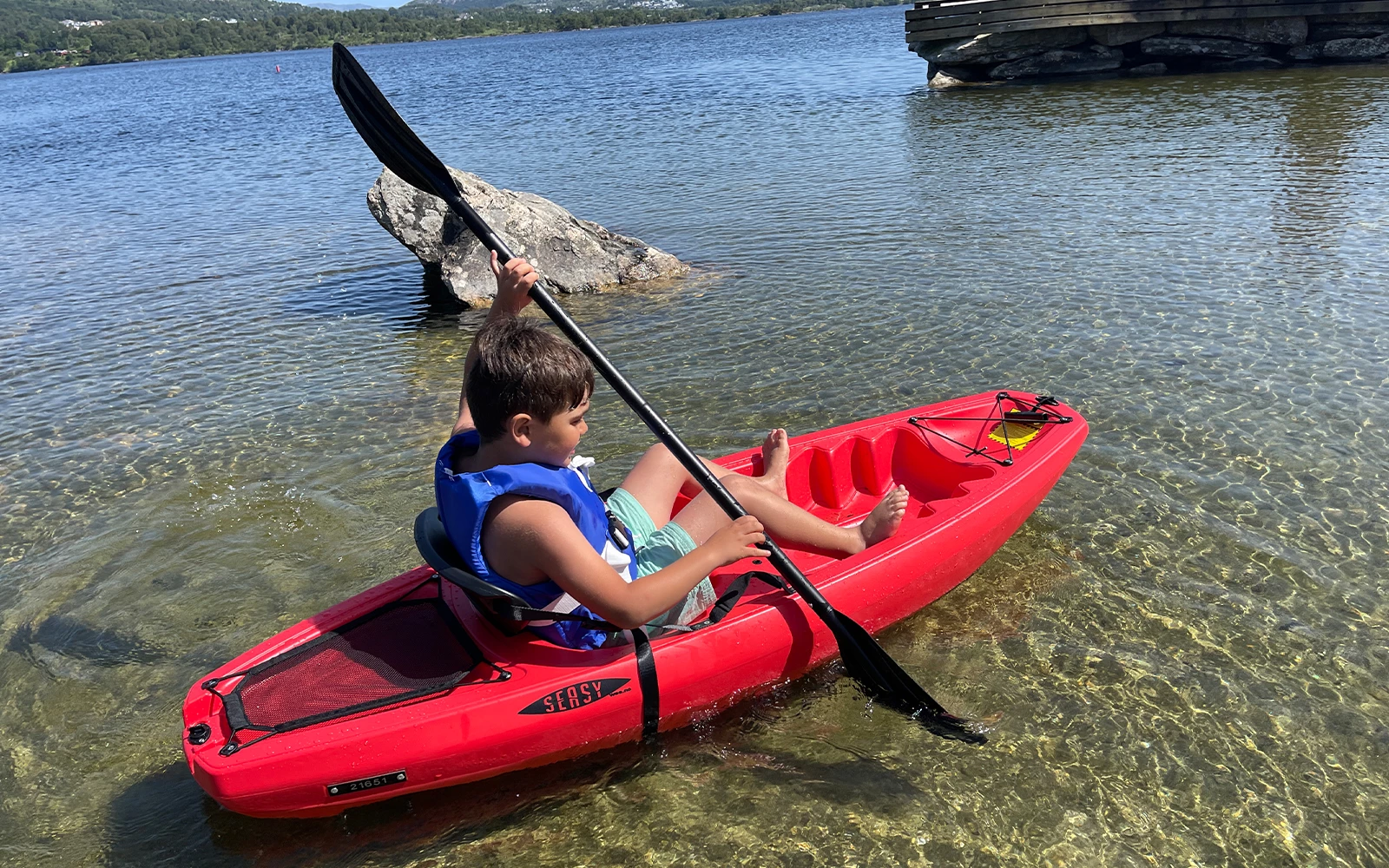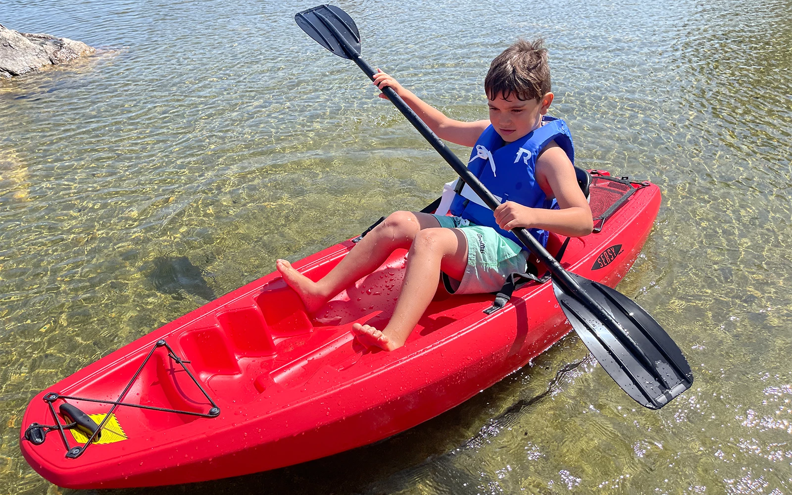 Kan deles på midten, sammenleggbar padleåre (kajakk) i aluminium og PE-plast. Ved å ta fra hverandre åren, vil lengden bli halvert.
