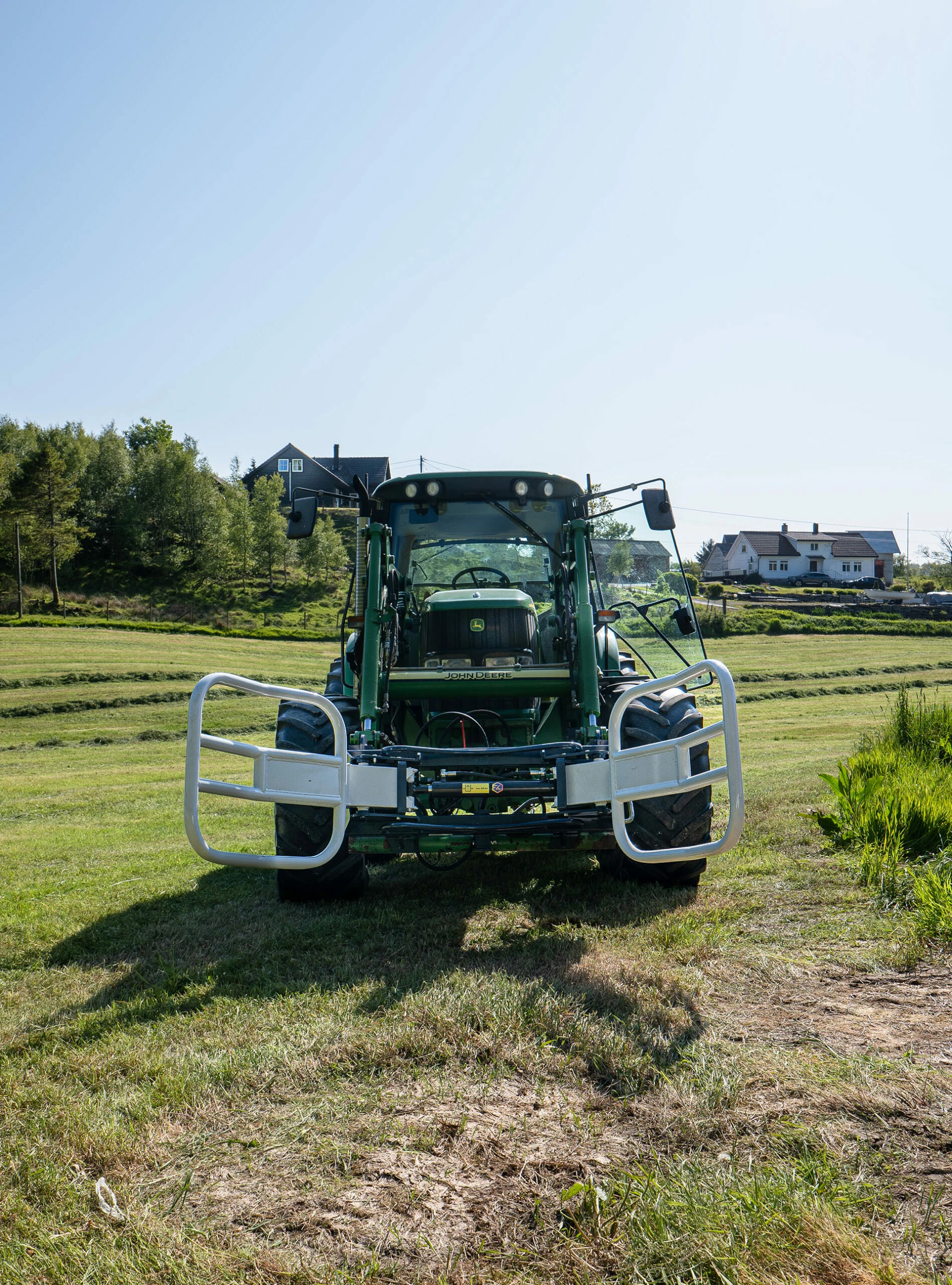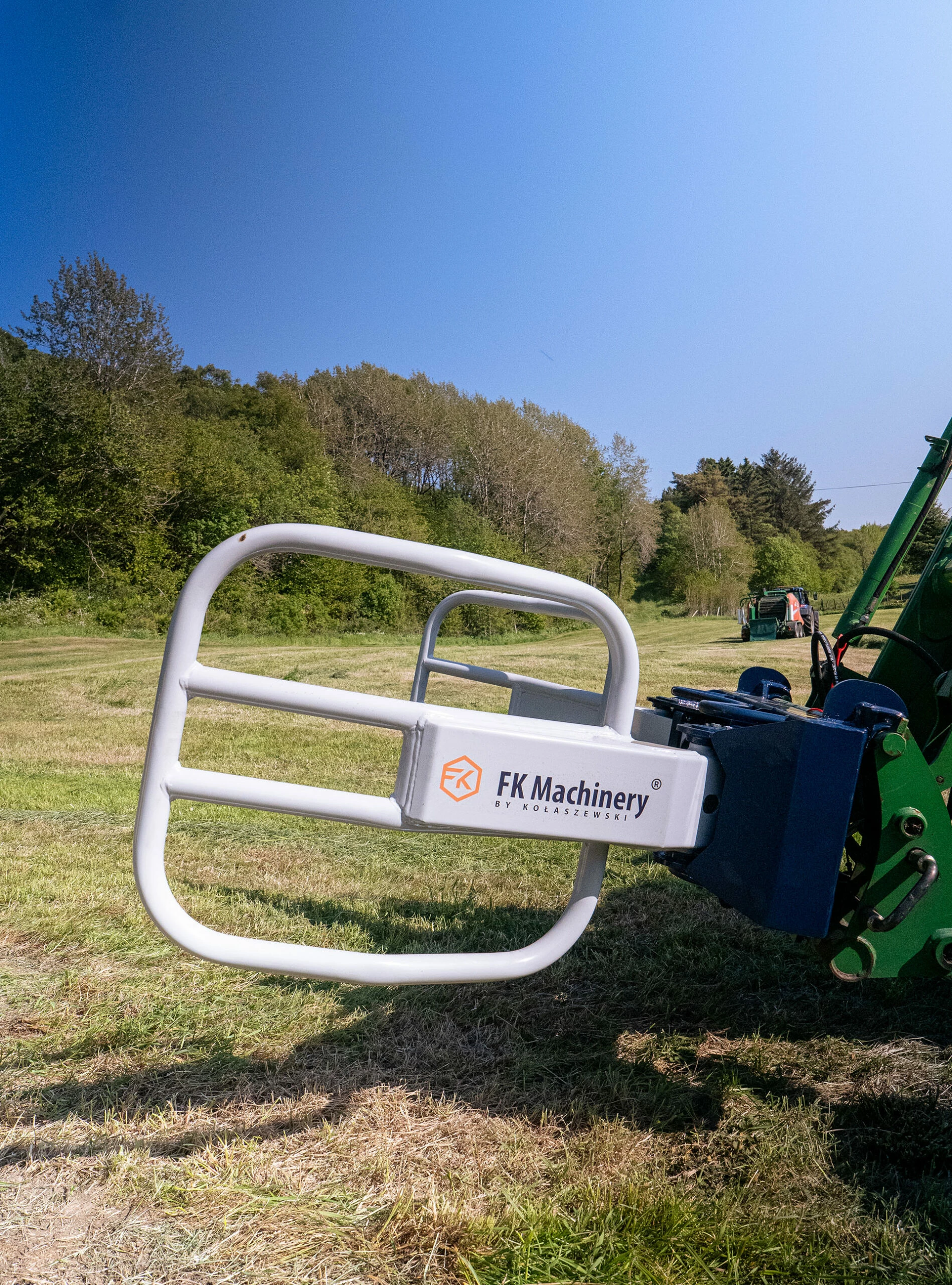 Rundballegripene med hydraulisk justering av klypene for skånsom frakting og transport av rundballer med plast. Kloen kan justeres loddrett og vanrett for enkelt å gripe rundballen uansett vinkel. Dette gjør det enkelt å håndtere rundballene uansett posisjon. USBG er et kvalitetens redskap levert av FK Machinery