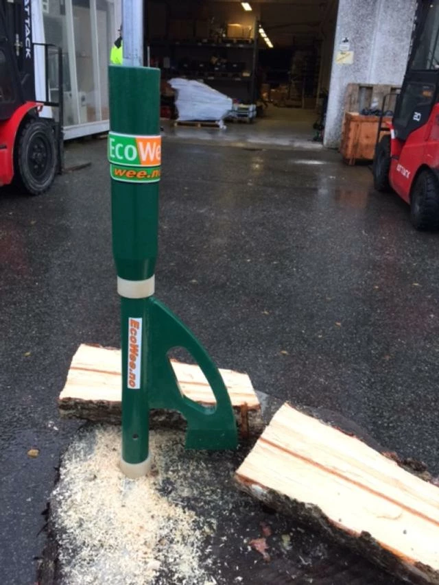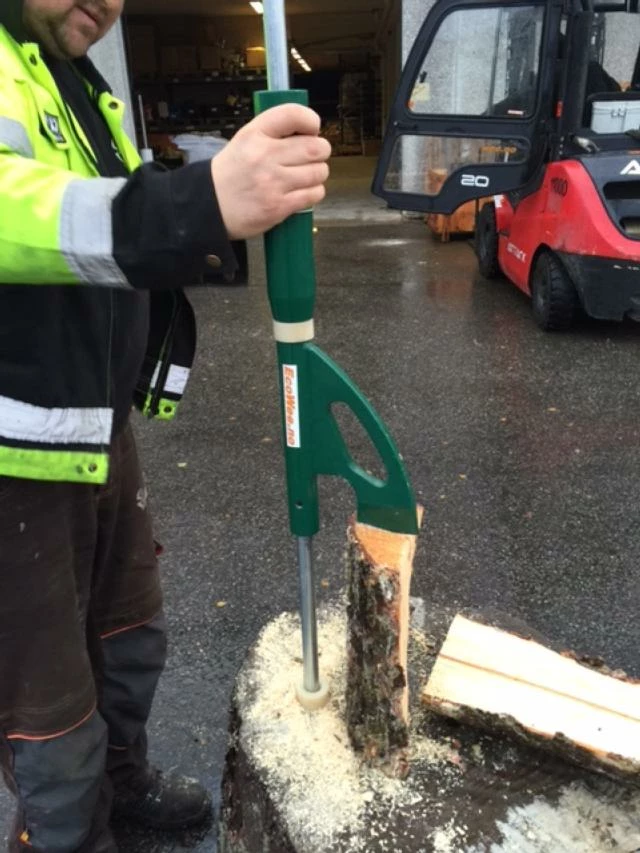 Har fastsatt skaft i stamme, som gir den god støtte og kraft til å dele vedkubber.