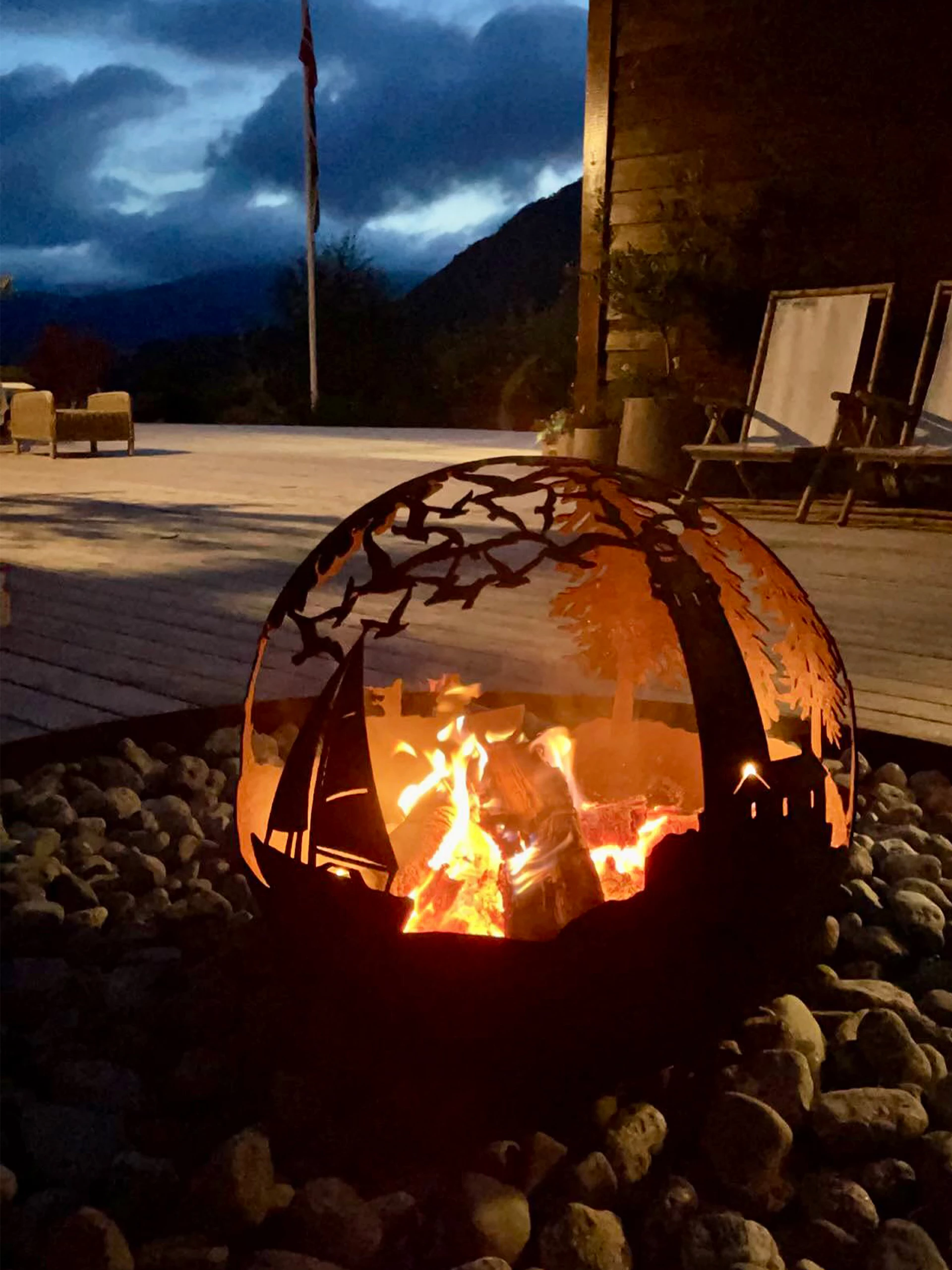 Skal bålkulen stå på terrassen må en ha f.eks. stenplate under for å unngå brannmerker.